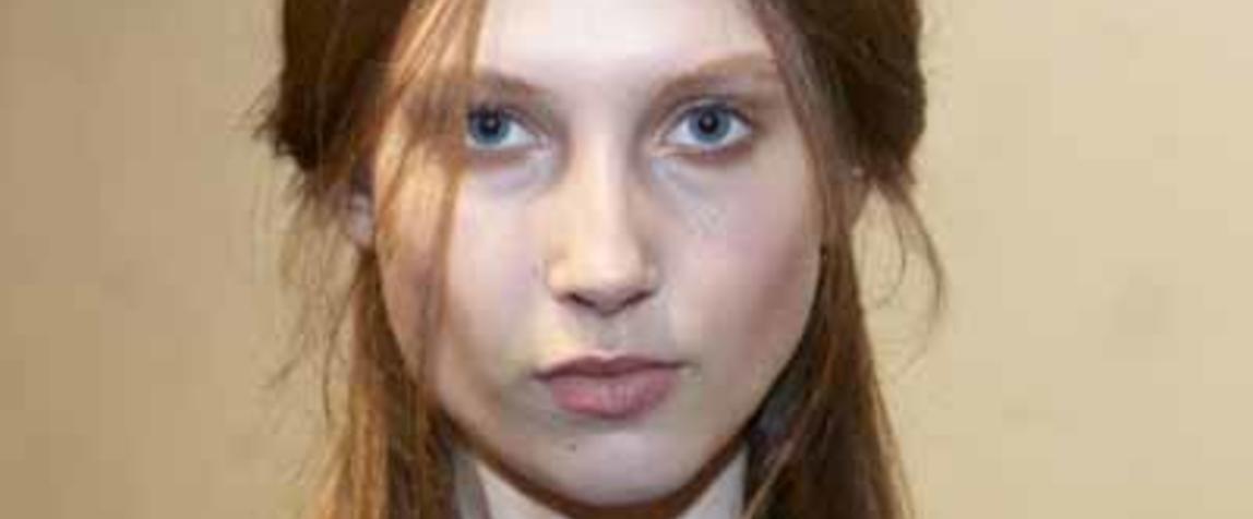 Make-up style: "We've got two make-up looks today, we've got Romeos and Juliettes. The look we're trying to achieve for the Juliettes is that innocent first love, that just been kissed look. We've gone really minimal on the skin. She looks like she's glowing from within, so we've accentuated highlights, we've only concealed where they need it, and there's going to be a natural flush rising up from the cheekbone. We have a really soft contour in the natural shadow of the eye and a bitten lip. For our Romeos, we wanted them to look as masculine as possible. They're quite androgynous, we've gone minimal on the skin, concealed where needed, and chosen a feature to accentuate - and that's their brows. We've really focused on the brows, filled them in and brushed them up. Throughout the whole collection there is a cross motif, so we've given them a little cross on the face just to add another element," says Naomi McFadden.