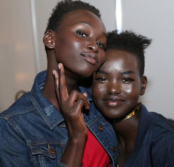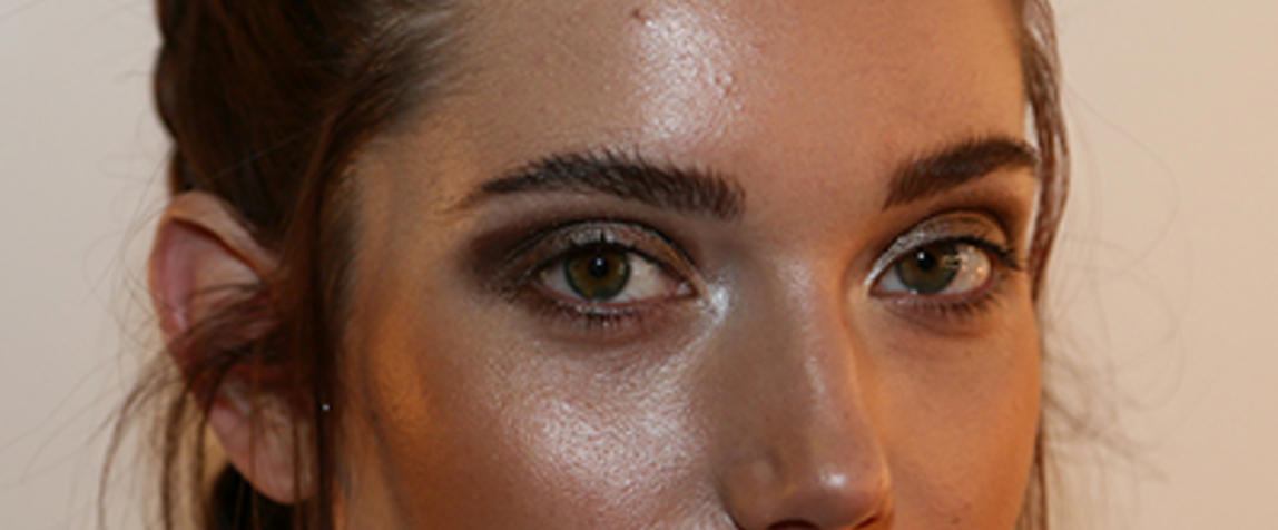 Make-up look: "Today is the most beautiful luminous skin, so we want that transient luminosity coming through. We've got a very bronzed up eye and a thick lash on top of that to complement the girl's look. There is a bronzed cheek with loose powder over that. We have a white centre part on the cupid's bow of the lip and then a glossy lip to follow through."