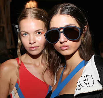 Hair look: “Our Bondi Bather girl is someone who has an outdoor lifestyle but she lives close to the inner city as well - so she's basically a glamorous utilitarian type. What we've done with the hair is two different braided designs with a sporty-come-fashion edge to it. One look has the one central braid and the other is splitting the hair in half with a centre part with braids down the sides. To get these looks, we've firstly used our Pillowproof Express Primer for heat protection and we've also coupled that with one of our volumises - the Rootful 06 - which is applied to dry hair. We then do a directional blowdry to get the hair back from the face and sitting up on the sides - which makes it easier with our sectioning. We then do our three strand braid - tie it off at the ends and then use the new Tripletake Finishing Spray to finish up the design."