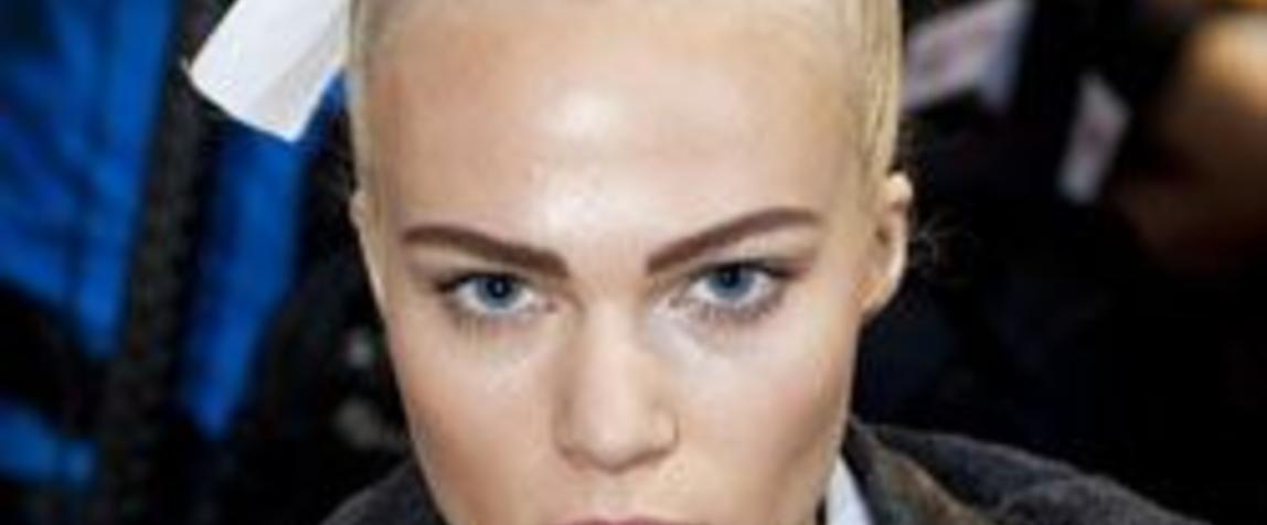 Hair style: "The Zimmermann range is called Clique Clique and the inspiration came from Kate Moss from the magazine The Face from the early 90s, so it was like a new romantic. We wanted to bring in something young and fresh, but we've actually called on some old ideas. One being rag curling - which is something from many, many years ago which is incorporated into this look. It's an equestrian shape or mohawk shape in the hair, some of them are on the top and some of them are through the back and then we've rolled that into cotton rags and wound the rags around the hair and tied little knots in their hairs. The hair works really beautifully with the clothing range. We started off using the Goldwell StyleSign Power Whip to get all the flyaways down and dry the hair into place and then we've used the Hold Factor 3 Hair Spray. We finished it off with the StyleSign Diamond Gloss. We wanted to keep it a little more fresh and young, so we haven't gone heavy on the product," says Sharon Blain.