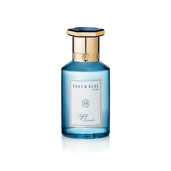 Shay & Blue Suffolk Lavender is a fragrance with an intense, rich scent. It has top notes of lavender, heart notes of spices and smoky incense and base notes of musk and pinewood.