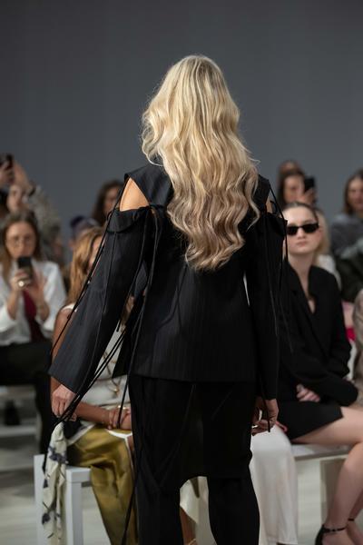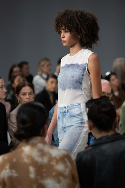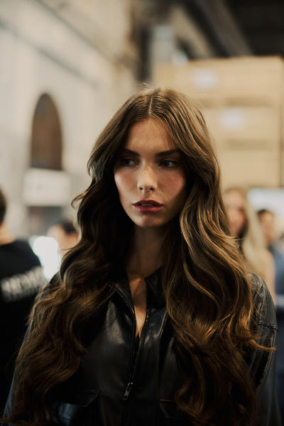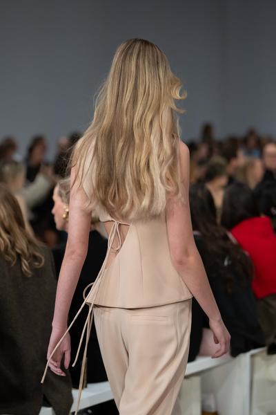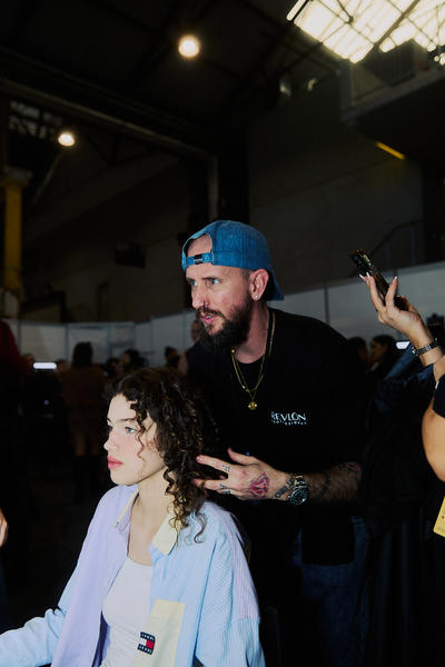 "She wanted to carry that through to the hair. So we worked with the models’ natural textures, enhancing curls with Revlon Professional UniqOne Curl Cream, and for straighter hair, using Eksperience Densi Pro to thicken and add organic texture, giving the hair a kind of day-spa treatment."