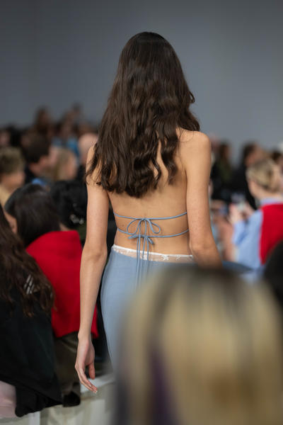 Working closely with Karla, Ben crafted hair that felt weightless yet intentional, mirroring the collection’s ethereal silhouettes and delicate layering.