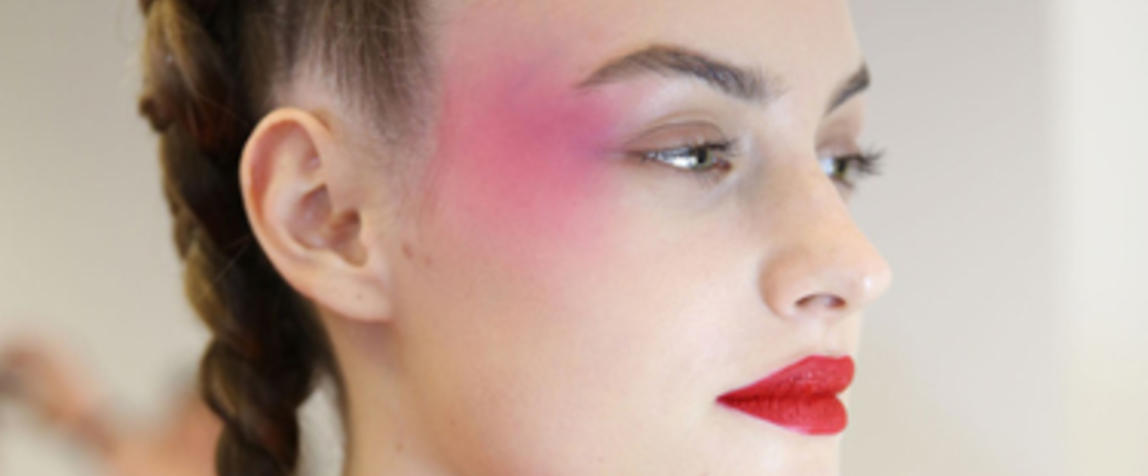 Strong blush and pink cheeks were popular at Alexis Mabille, Giorgio Armani Privé, and Alexandre Vauthier – where makeup artist Lisa Butler wrapped bright pink blush from the temples down to the apples of the cheeks.
