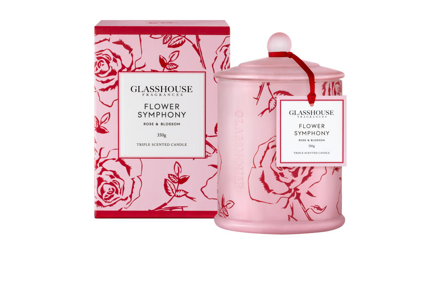 Glasshouse Fragrances Flower Symphony is a limited-edition triple scented candle for Mother’s Day. Top notes of bergamot, lemon and pear; middle notes of rose, freesia and jasmine; and base notes of dry amber, patchouli and musk.