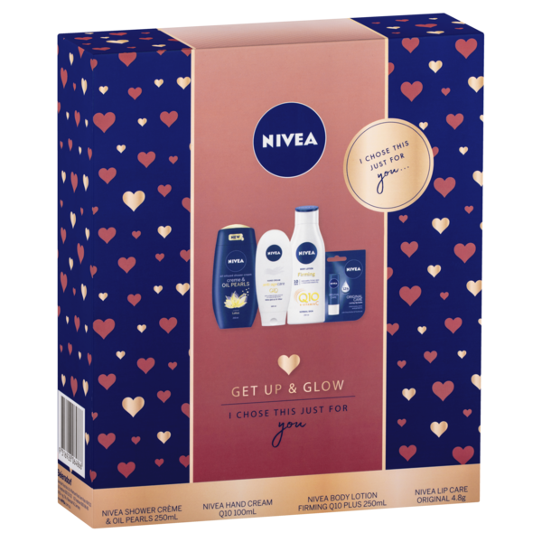 The NIVEA Get Up & Glow Gift Set is ideal for pampering mum this Mother's Day with some of the brand's best sellers. The gift set includes NIVEA Shower Crème & Oil Pearls Lotus (250mL), Body Lotion Firming Q10 Plus (250mL), Q10 Anti-Age Hand Cream (100mL) and Original Care Lip (4.8g).