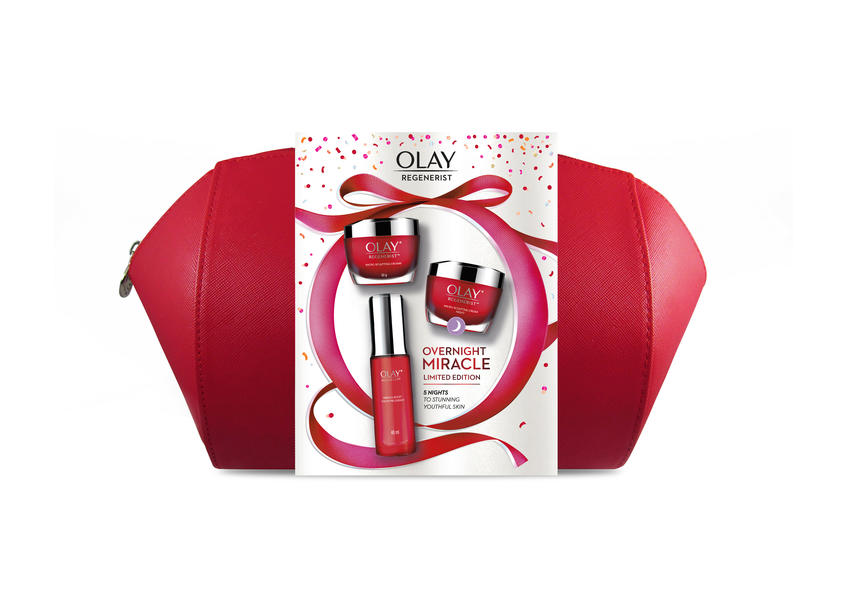 Olay Regenerist Overnight Miracle Gift Set is a skincare gift set that contains the Regenerist Micro-Sculpting Cream, Regenerist Micro-Sculpting Night Cream and the Miracle Boost Youth Pre-Essence to help skin look younger in no time.