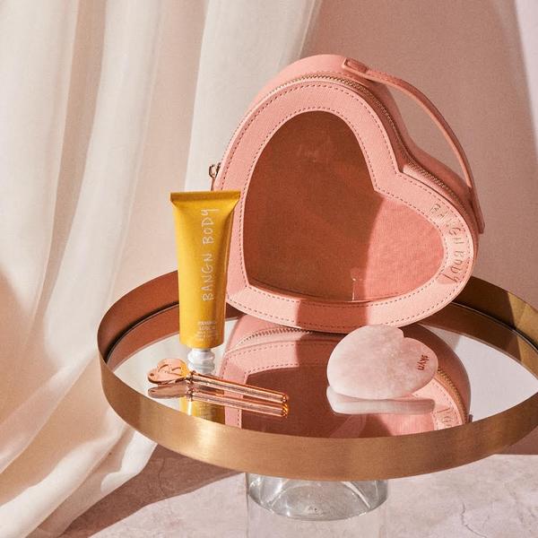 BANGN BODY x SKYN Collective by Keira Maguire is a limited-edition Be My Galentines Bundle in collaboration with BANGN BODY, Skyn Collective and Keira Maguire. It includes a heart shaped beauty bag, 50mL Firming Lotion, Bangn Body Rose Gold Tube Key and a heart shaped gusha tool by Skyn Collective x Keira Maguire. Available online at BANGN BODY from February 12, 2021/