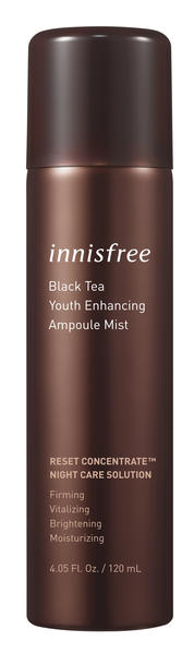 innisfree Black Tea Youth Enhancing Ampoule Mist is an intensive anti-ageing mist with ultra-fine micro particles. It is formulated with Reset Concentrate™ to address signs of skin fatigue and panthenol, a moisturising ingredient, to deliver instant hydration for dewy and supple skin.