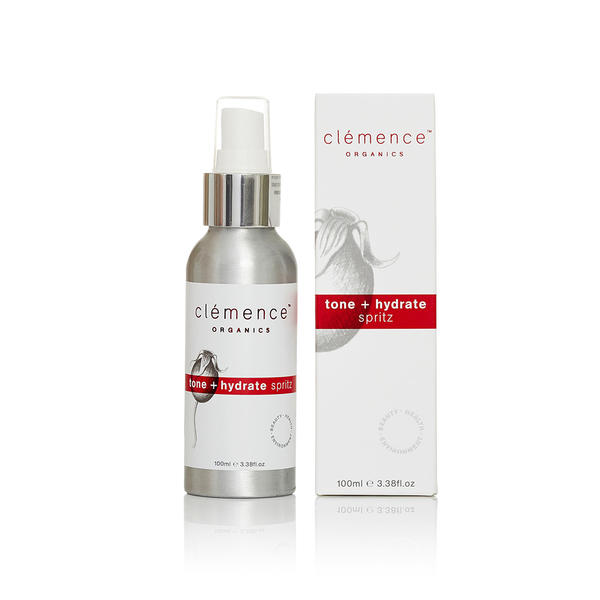 Clémence Organics Tone + Hydrate Spritz is an organic rose water that is a simple yet highly effective multi-purpose hydrosol. It works to balance pH levels and optimally prepare your skin for receiving further hydration.