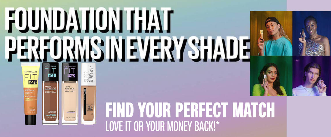 Finding your perfect foundation shade is easier than ever by using Maybelline’s online Foundation Finding Tool. Find your perfect shade, here.