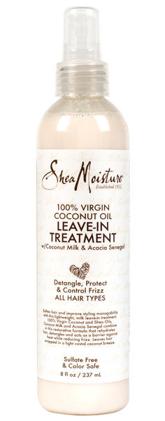 SheaMoisture 100% Virgin Coconut Oil Daily Hydration Leave-In Conditioner is a lightweight leave-in treatment that restores and re-hydrates hair. It detangles and acts as a barrier against heat while reducing frizz.