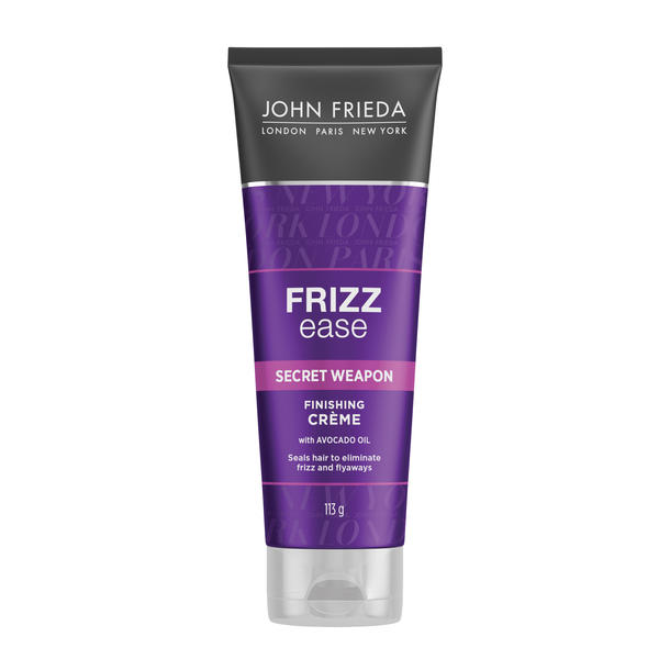 John Frieda Frizz Ease® Secret Weapon® Finishing Crème is a styling cream that instantly touches up and eliminates frizz for all hair types. The moisturising formula contains avocado oil to rehydrate the hair for a smooth, silky look.