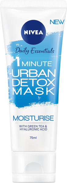 NIVEA 1 Minute Urban Skin Detox Mask + Moisture is a one minute detox mask that helps intensely moisturise the skin. Green tea and hyaluronic acid detoxifies the skin by reducing environmental stressors, while intensively moisturising for 72 hours.