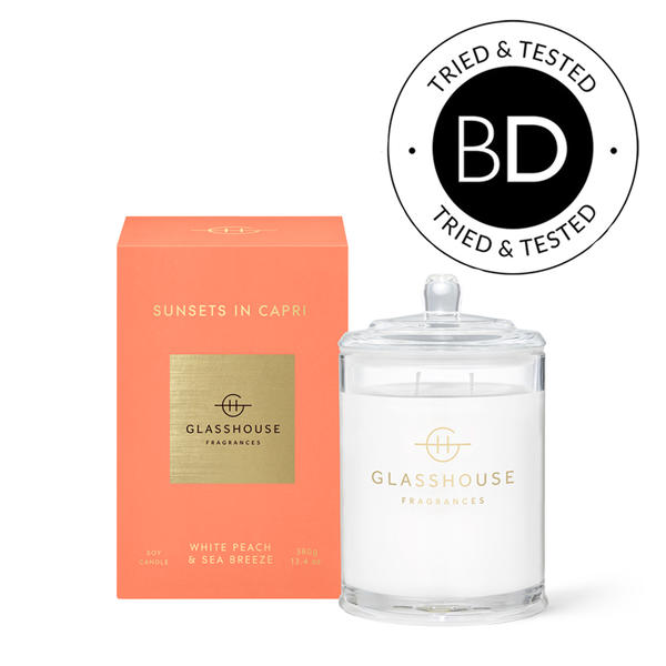 Glasshouse Fragrances Sunset in Capri - White Peach & Sea Breeze Soy Candle 380g - Tam