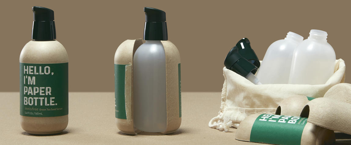 Continuing to use innovation as a way of making beauty more sustainable, innisfree's new Green Tea Seed Serum (named Hello, I’m Paper Bottle) features packaging made with an outer paper mould, a lighter inner plastic liner to protect the formula, and 10% recycled plastic used for the cap and shoulder to help reduce the use of plastic.