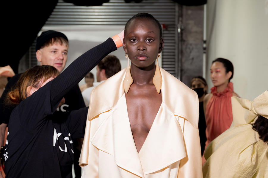 "What we’ve done is we’ve kept the skin super raw," said Srokowski. "We wanted to create more of a glow using just skincare, so we’ve used our Genifique Toner and the Moisturiser and we actually used no foundation because we wanted to keep it looking like healthy, glowing skin but with no foundation.