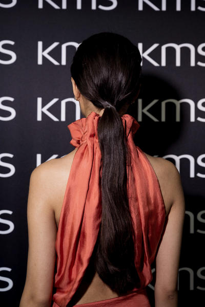 8. Spay with KMS HAIRSTAY Working Hair Spray through the mid-lengths and KMS MOISTREPAIR Hydrating Oil on ends of hair.