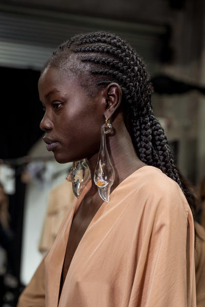"We've done an untied ponytail that's super low at the nape so that it runs straight down the spine of the back," said Holmes.