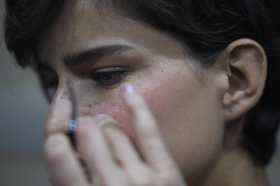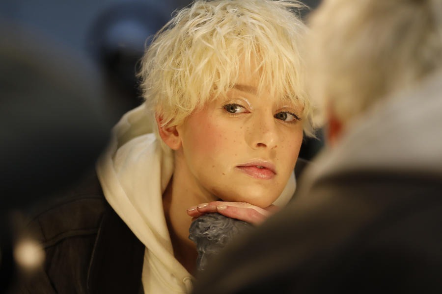 "Use De Lorenzo Densify, a spray gel at the roots and blow dry it in to give traction and grip. Then use Quick Sand, a mattifying texture powder applied through the hair to build and give the flyaway texture.