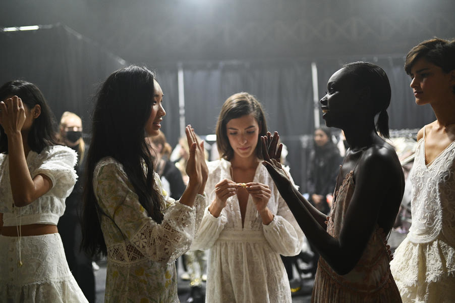 "We’re bringing a cool girl energy to hair, so it's undone and it's textured," said Ngata. "We’re kind of embracing new quirky textures in the hair, instead of pulling it out and manipulating it. We’re working with the girls’ natural texture but kind of elevating it a little bit. It’s a little bit flyaway and it’s a little bit imperefct."