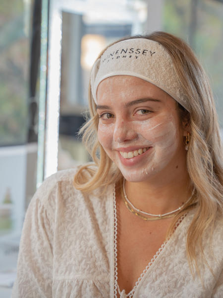The renowned Revive Clay Masks were used on the models, as their purpose is to brighten tired skin using vitamin-C-rich Australian kakadu plum and pomegranate.