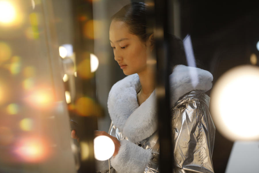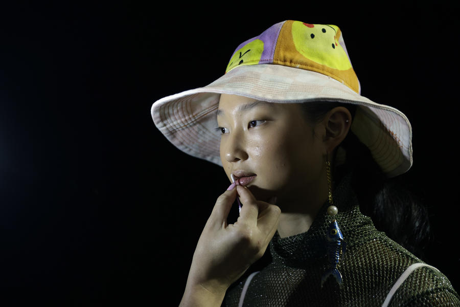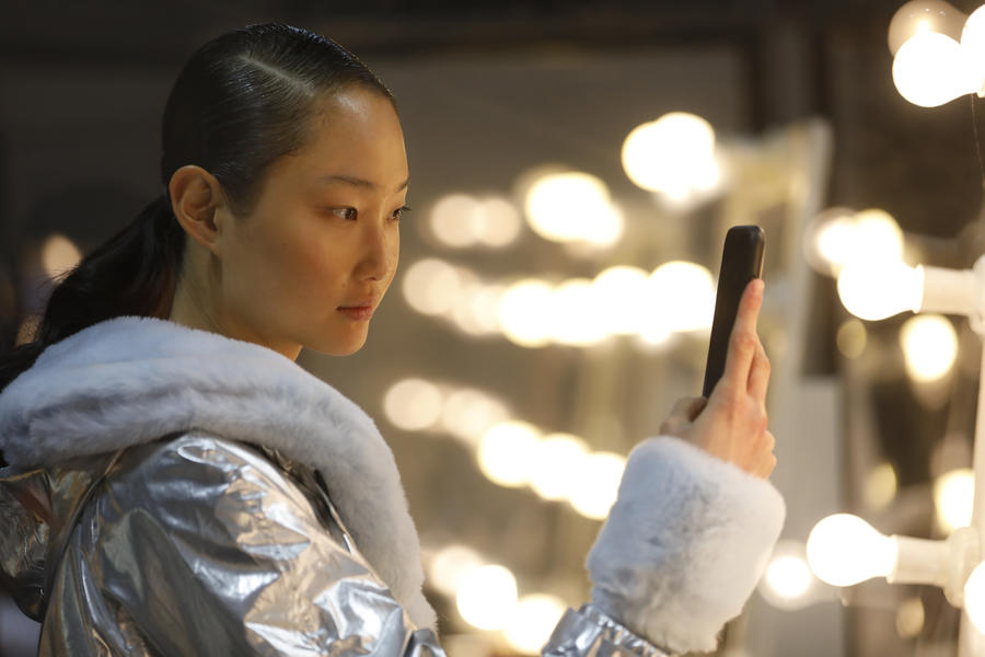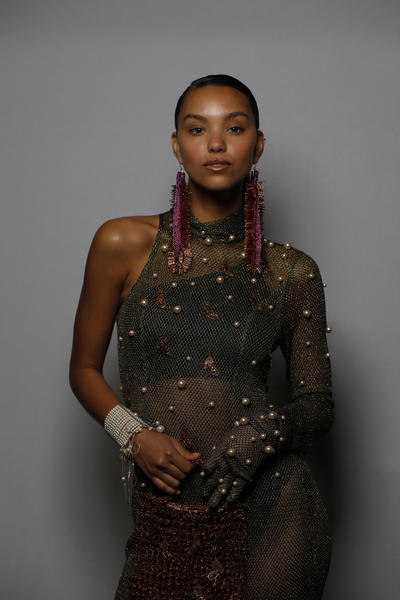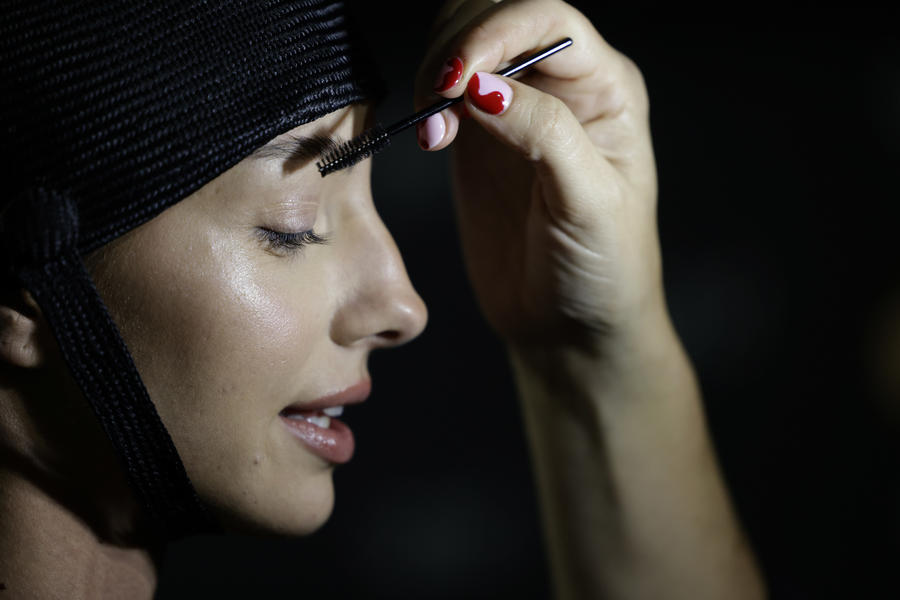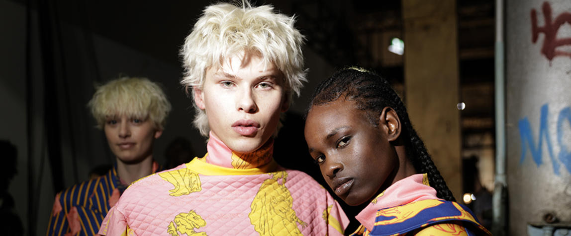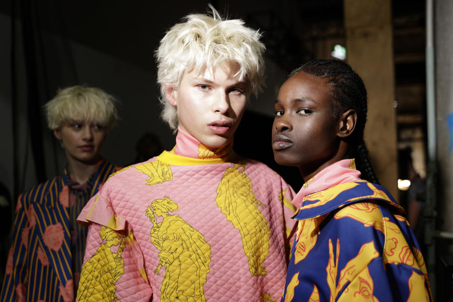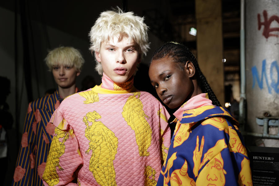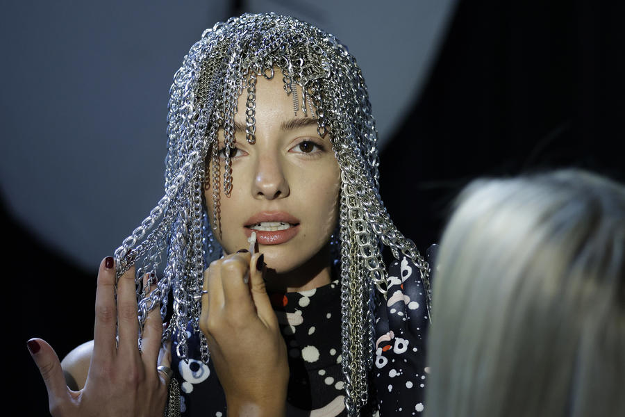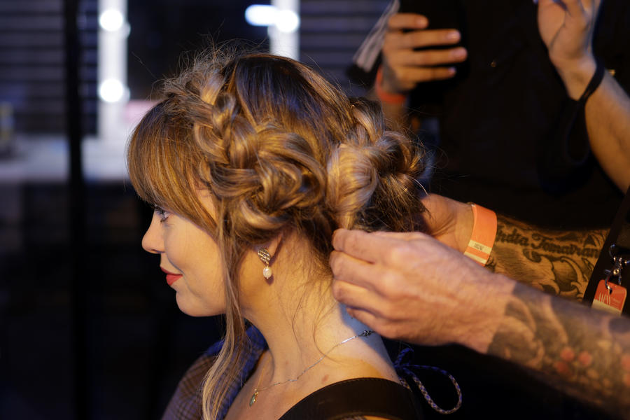 "We’ve got two fabulous looks going on here," said Hughes. "How we’ve created these looks is a juxtaposition of smooth, sleek shine with our ponytail and also with our dishevelled texture as well. Our hero product of the day is Redken Fashion Work. It’s beautiful to be able to re-dress the hair when you’re actually changing the looks, about to hit the runway for the second time."
