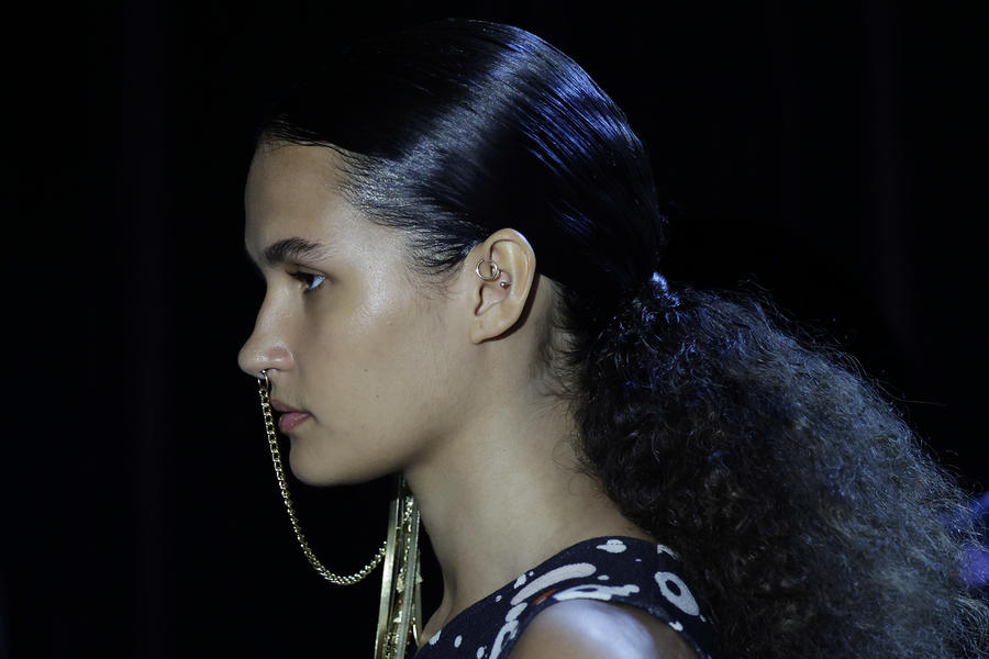 Any textured hair models had either side part and smooth ponytail, or sleek cornrows