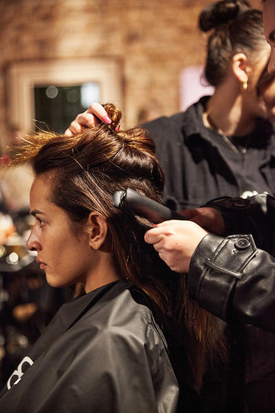 Led by hair director John Pulitano of Headcase Hair and finessed using ghd tools, tresses for Resort 23 were styled to mimic the effect of salt water on the strands, with a sleek, wet look commencing at the crown before descending to slightly drier ends – echoing the aesthetic of having just emerged from the sea.