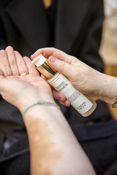 "Using Sunday Riley, we were able to create that unmistakeable glow with just a few products. Good Genes really exfoliates, plumps and brightens the skin leaving an even, naturally luminous base where little to no foundation is required," said Schimid.