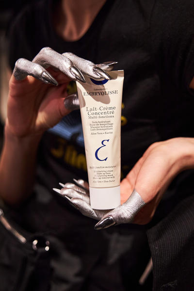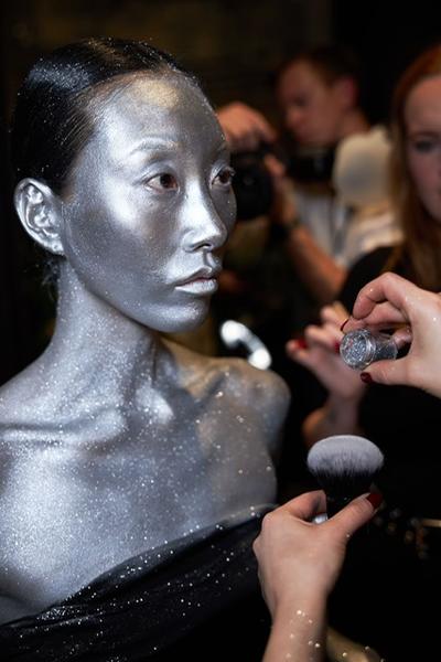 "We also painted a model from head to toe in chrome silver, the perfect prep for this was Lait-Creme Fluide body."