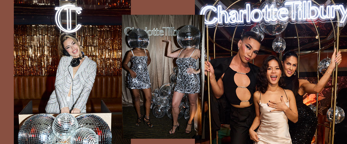 Champagne jelly shots were served by waitresses in dancing disco ball heads, while guests enjoyed the carefully curated cocktail menu featuring custom beverages hand-picked by Charlotte herself, including a 'Glow On The Go' spicy margarita and 'The Beautyverse', both named after products from the holiday collection.