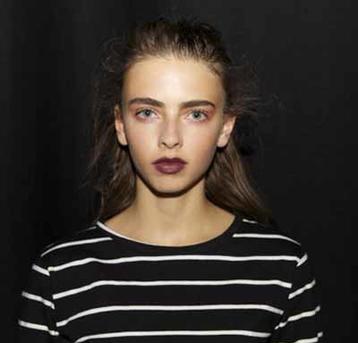 Make-up style: "Today's look is inspired by the Alice McCall girl - she's a little bit risky but still very beautiful. They've got a sweetness about them while also having a grunge element. What we've tried to do with the make-up is get really inspired by the fabrics in the clothes and incorporate a lot of the metallics into the eye. We've got three different eyes going on, we've got a charcoal, a copper, and a purple. Each girl we've picked the colour for what suits them. We're creating an egg shape with the eye look - rather than doing something glamorous or graphic. We have a metallic pigment applied over the Paint Pots on the eyelids, curling lashes and adding mascara, and then adding some glitter to continue the metallic vibe. Really clean skin, brows brushed up naturally, and a bit of lip balm," says Victoria Baron.