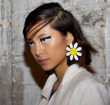 Make-up style: "Kirrily wanted a goddess vibe to the make-up, a little Grecian, a little Roman. We made a nod to that feeling but we also took that look to Coachella, making the look a little bit more festival and more wearable. It's really a simple look - just black eyeliner, heaps and heaps of mascara and then we used gold leaf as an eyeliner on both upper and lower lashes. It's all about that beautiful dewy skin so we spent a bit of time massaging the moisturiser in before using a highlighter that was mixed up with gold pigments and used it on the cheekbones. The lips are mostly a nude lip, but it's a very wearable, flattering nude lip as opposed to something bleached out. Every now and again there will also be a girl adorned with a vibrant orange matte lip, which totally matches the colours of the collection. This show was quite exciting because there is no make-up sponsor so we really got to do whatever we wanted," says Liz Kelsh.