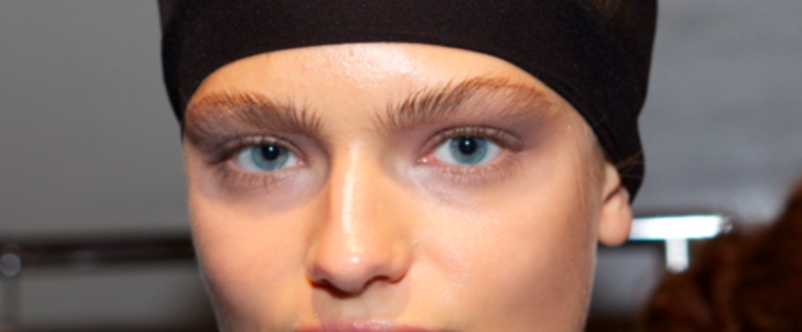 Make-up style: "The vision for this look is 'monks in Paris'. We're using lots of grey colours on the eyes and the lips, of which the Carriagworks building itself is also an inspiration. We've used similar colours to ash and concrete - cool tones which reference the Cambodian heritage and the collection as well. Then after all the matte greys, we're going to finish with a super gloss on the face and eye lids. It'll be glossy all over the face and then matte just down the centre. We've prepped and highlighted the skin using oils, moisturisers and highlighter, and just perfected where we needed with a little bit of concealer. We don't want a lot of product on the face, because we're going to finish with the gloss. We're also brushing up the brows and using some pencil highlighter on the inner corner of the eyes," says Carol Mackie.