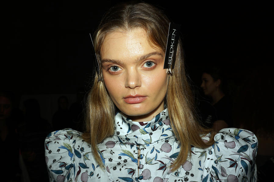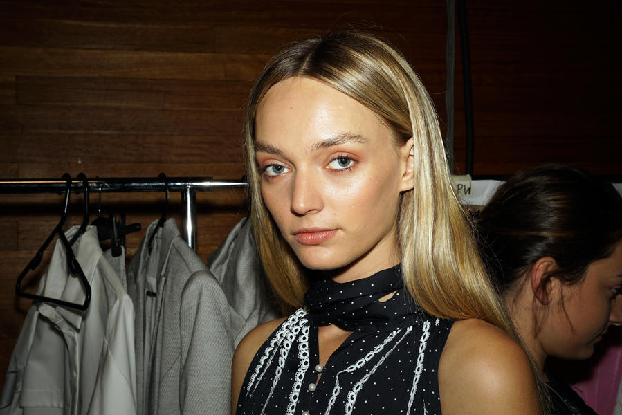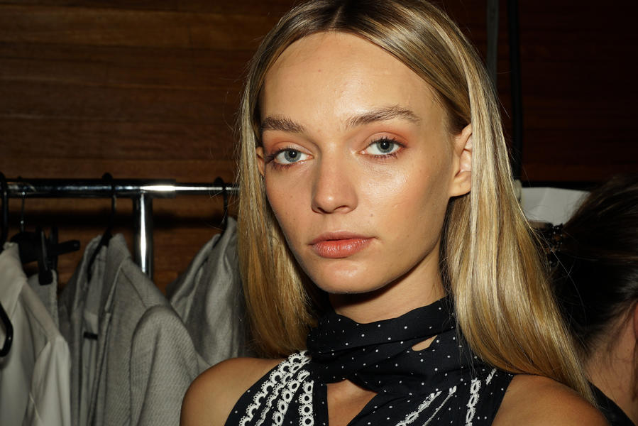 “We’ve created a really beautiful, signature Lancôme skin for this look so that the models are super glowy. The foundation has been kept really minimal with only coverage where we need it and there’s no contour. For blush we wanted a burnt orange flushed look so we’re taking a lipstick that we can also use across the eyes. There’s a subtle highlight to compliment the dewiness of the skin.