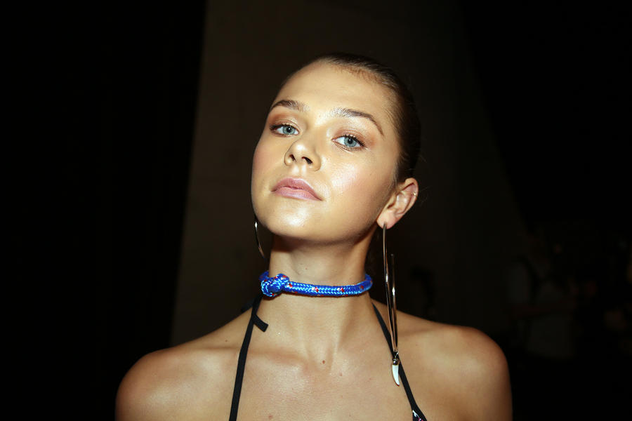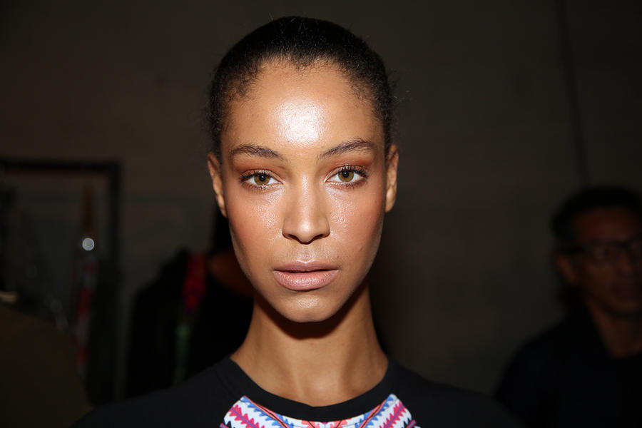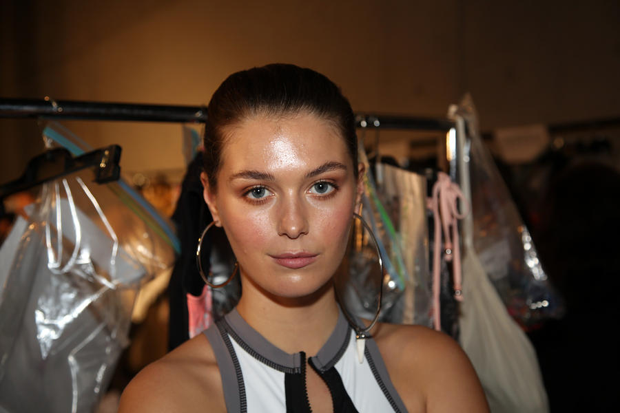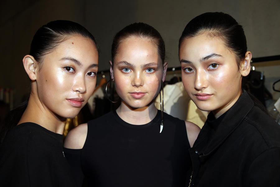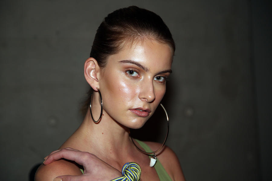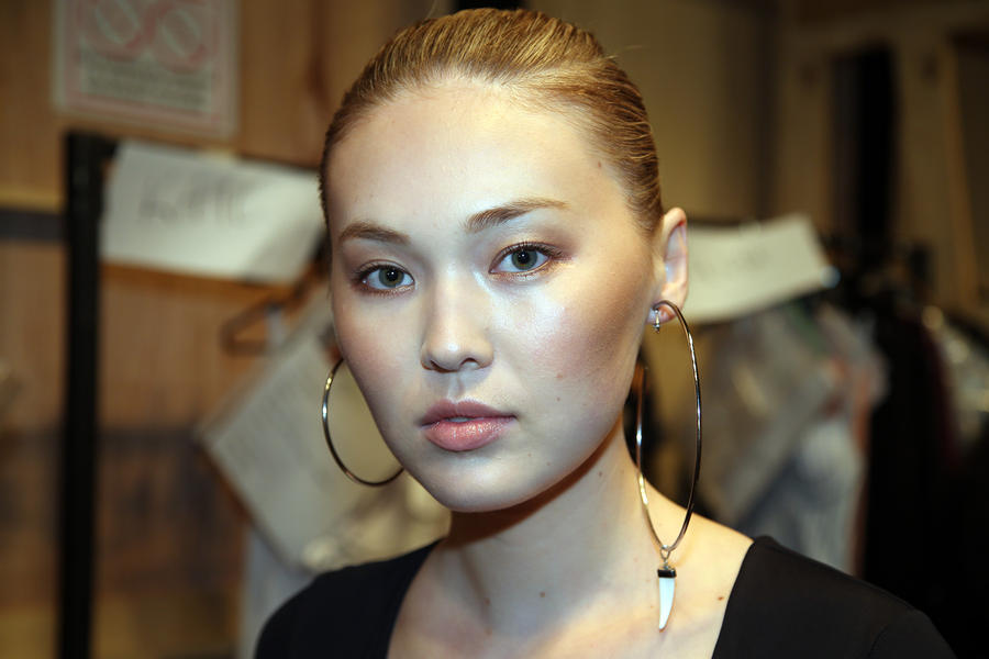 “The look for the Active show is definitely hyper-real, perfected skin, with beautiful luminous accents and highlights. The eyes are warm, bronze and smoky without too much intensity and for that we’ve used Total Bae Tone It in Hot to Trot which is a pressed, beautifully luminous powder. We’ve used the Napoleon Perdis Auto Pilot Radiance Boosting Primer and that in itself lends an impeccable radiance to the skin. We’ve combined that with the Napoleon Perdis Skin Elixir Serum which has porcelain flower extract in it, so very reflective and radiant. For the lips and cheeks we’ve used Napoleon Perdis Miss Jean Lipstick in MJ 10 to put a bit of life back into the complexion.”