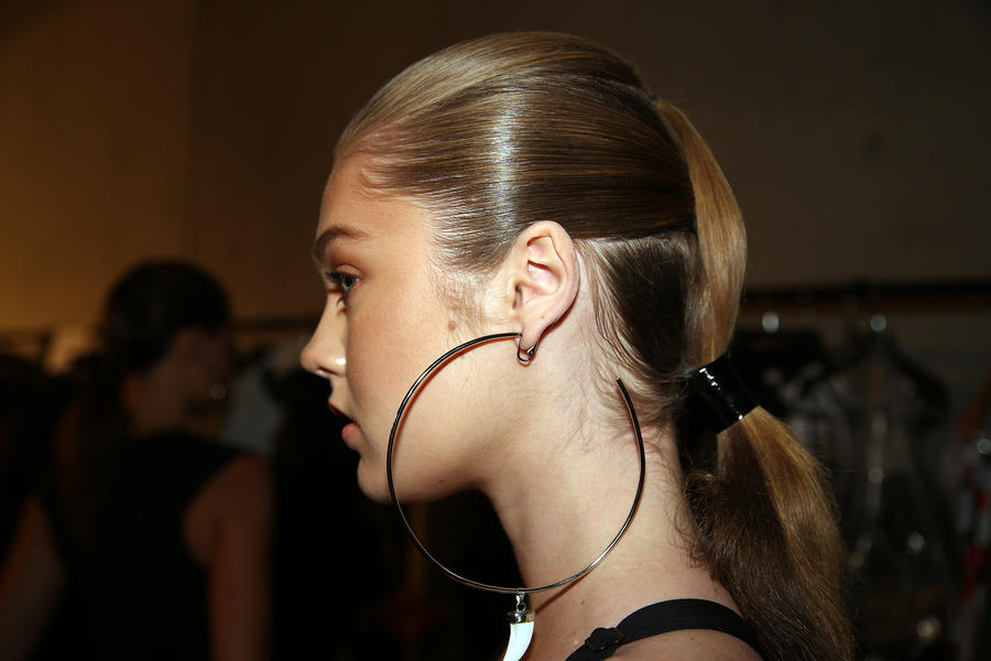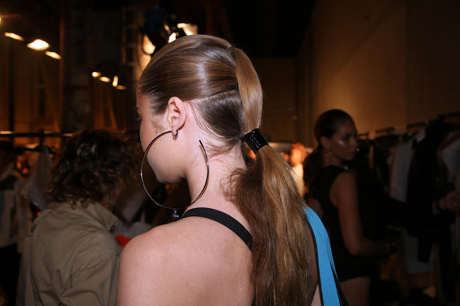 “The look is very active, if a girl is going to the gym she’s going to pull her hair back. We’ve actually got three different ponytails pulled into one so the look is a bit different and allows the girl to go out after the gym as well. We prepped the hair with Pillow Proof Blow Dry Express Primer, a little bit of Redken Satinwear 02 Prepping Blow Dry Lotion and then we’ve smoothed out the ends. The ponytail is then wrapped with black bondage tape to give it a really modern finish.”