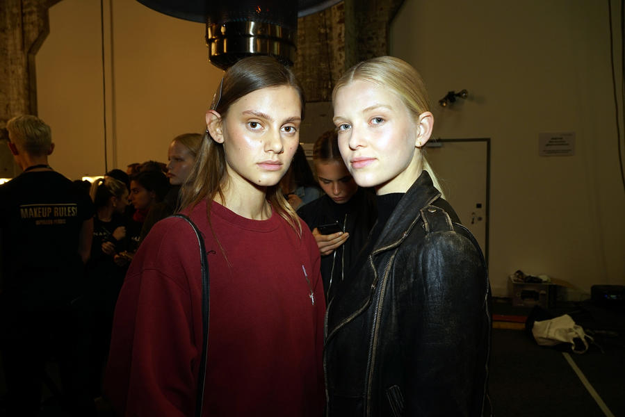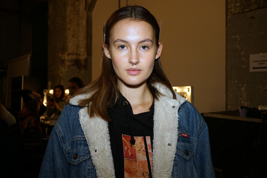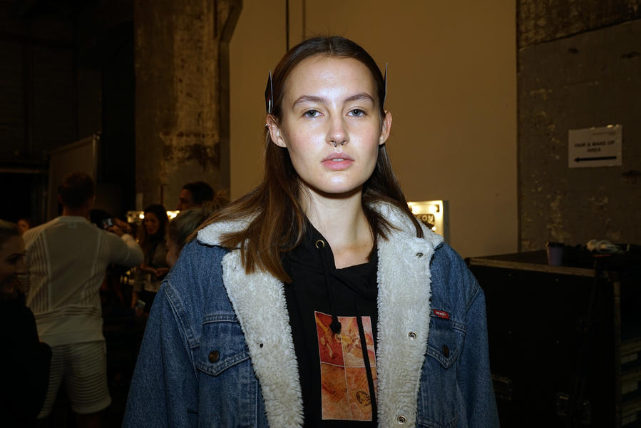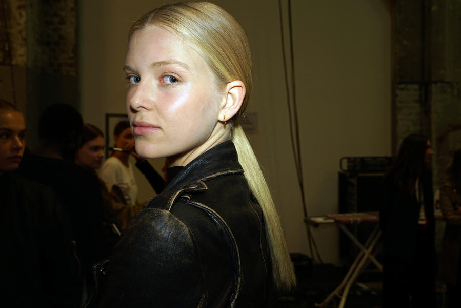 “We’re working with four separate designers today so there are four different looks. For Bod by Finch we’ve gone for a really clean, sleek pony and to do that we’ve used some weightless hairspray. The second ponytail we’re working with is a more textured feel and what we’ve done is use some texturising volume spray and volume dust. For Koral we’ve done a sleek ponytail parted down the middle and slicked down each side; to do that we’ve used a volume foam and some hairspray to get a really polished feel. PE Nation is only doing menswear and we’ve gone through the boys hair with a texturising paste and sea salt spray to bring out their natural texture.”