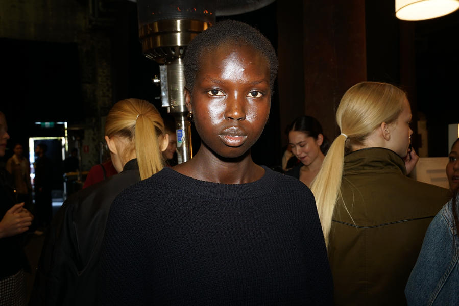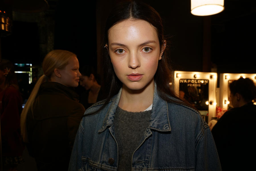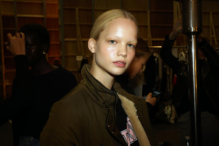 “The inspiration for this Active show makeup is that the girls are stepping out of the gym with a post-workout glow and taking a selfie. They’re flushed in the cheek and have an invisible glow. Each designer wanted the makeup clean and fresh faced so we’ve done the makeup for each designer the same. PE Nation’s brief was to keep the boys very natural with a hydrated lip. For the girls we’ve made them really hydrated in the face using the Turn On Sublime Nutrition Balm, which is a gorgeous balm you can use under makeup for an invisible glow. In the cheeks we’ve used a lipstick called Matte-tastic Lipstick in Ava to give them a flushed look and more of a peachy glow. Lips are just glossed and the brows and eyes have been kept nude.”