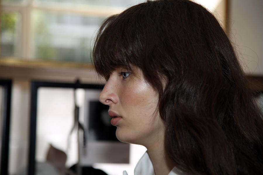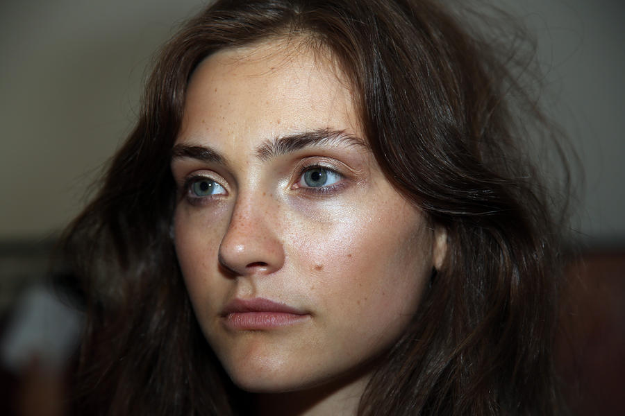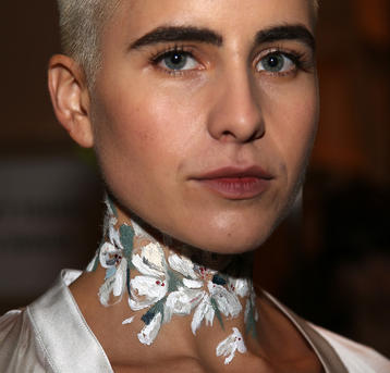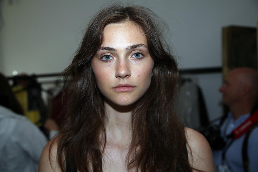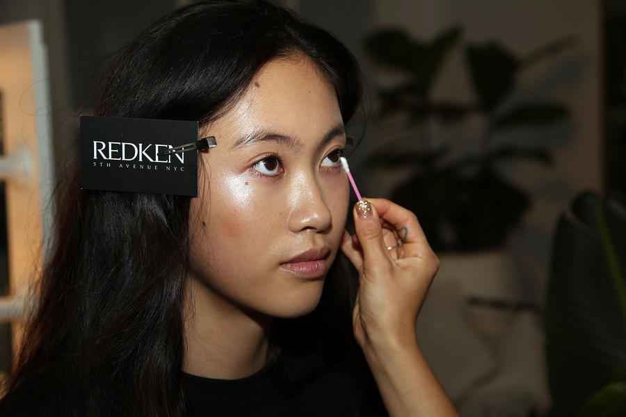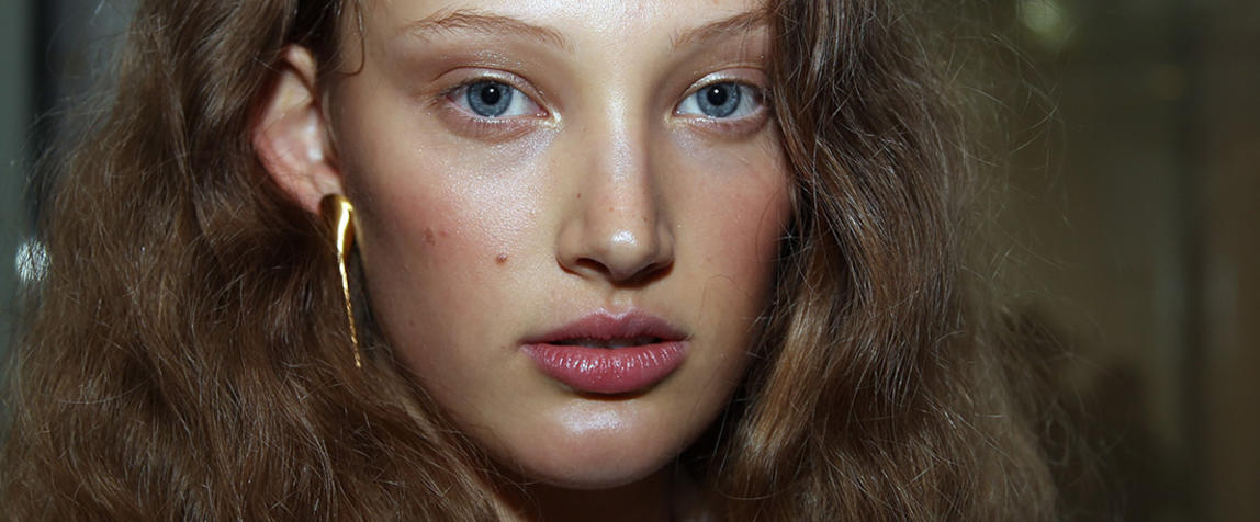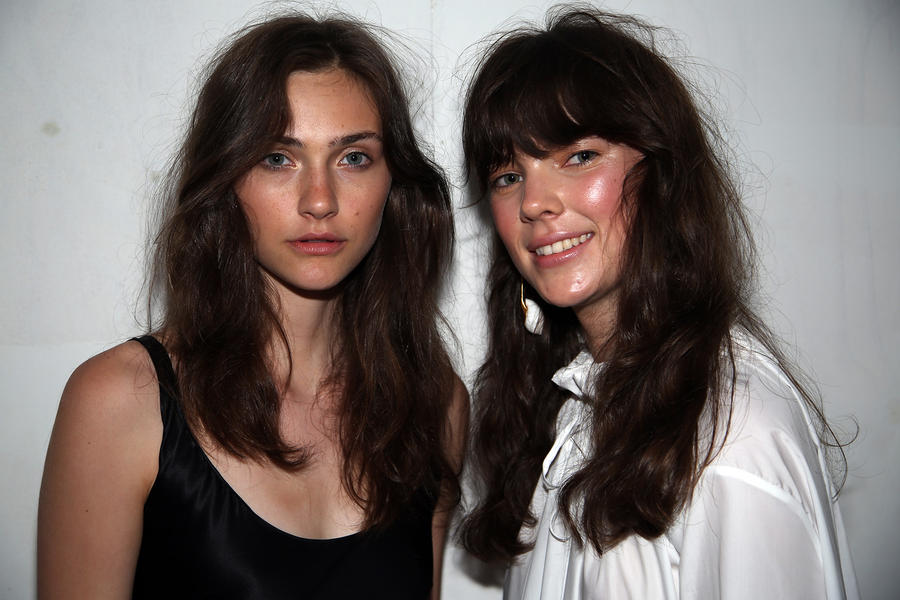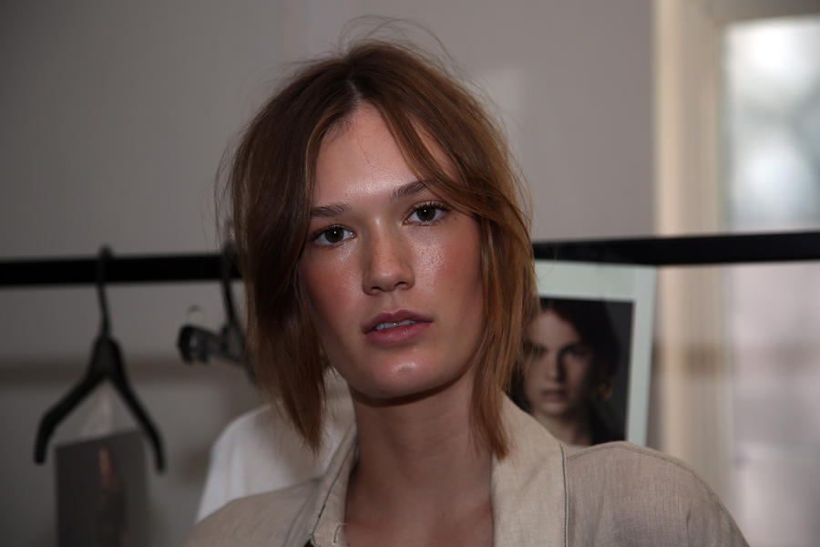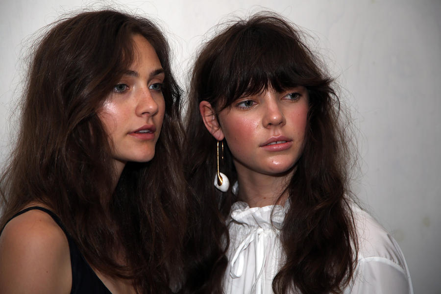 "The look is really youthful and ethereal. Marina [Afonina] wanted to transport everyone to this beautiful place in Italy where girls are just picking lemons; it’s a really organic collection using a lot of linens and shells so we wanted to keep the look organic too. The look was started with slightly dampened hair and a bit of Redken Rootful - that is a dry, powdery, body-building spray that also gives a little bit of grip, which is going to help us with all the flyaways. Then we used a flat iron to create flat iron curls, not actually rounded curls. This flattened texture keeps it a bit raw, and not beautiful in terms of big rounded curls. Once that’s done we used Windblown by Redken; that’s a really light hairspray with a dry shampoo. Spray heaps of that in. We brushed it all out and ruffled it all in with our fingers so we’re not getting that, sort of beachy curl, it’s a bit more brushed out and ethereal. Then we finished that off with a bit of Fashion Work 12 on the front.”