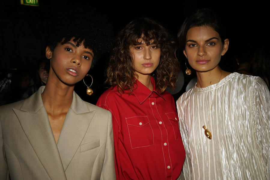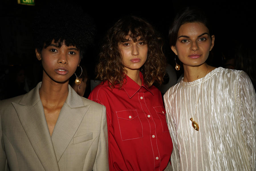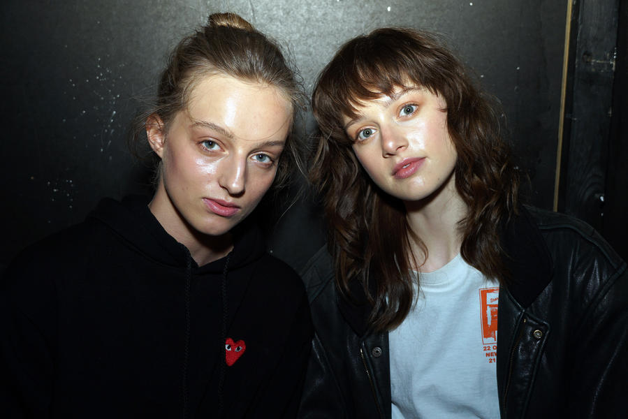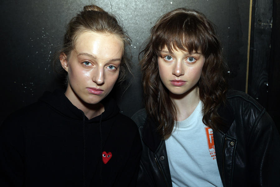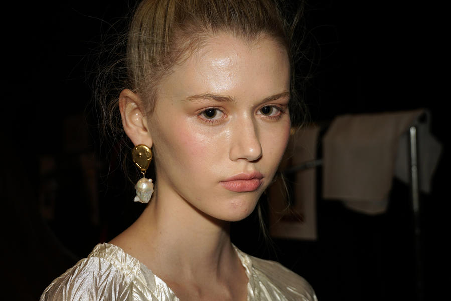 “They wanted a beautiful clean skin – a makeup look like you’re not wearing makeup. Our main products are our Afterglow Foundation with some Afterglow Luminosity. A lip and cheek stain as well just to give the girls a nice flushed look. For the eyes we have nothing – they wanted a nude eye – and brows are brushed up”