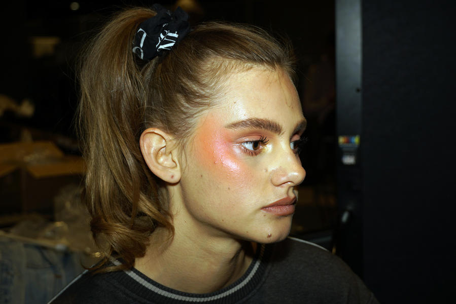 There’s three different looks – the same colour taken around the face in different 80s placements. We start each model with beautiful skin using the Face & Body Strobe Cream and only putting foundation where the model’s need it.