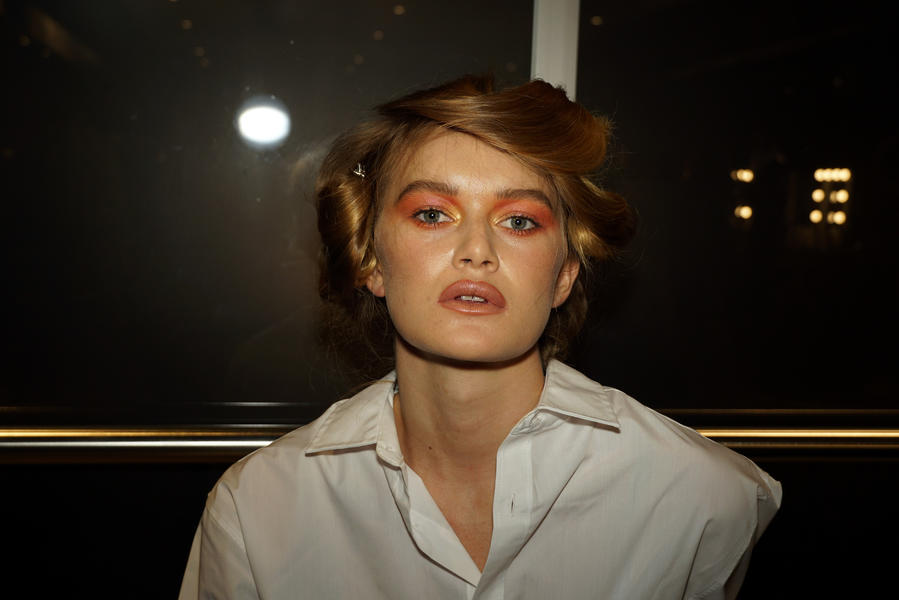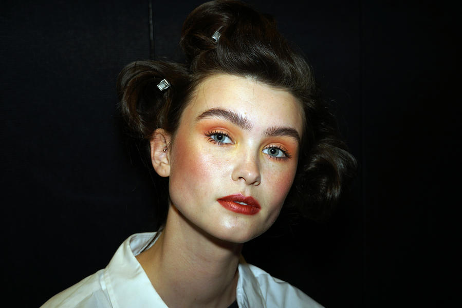 Every model is getting the ‘Brooke’ [Shields] brow. We’re starting it by creating a wide, feathery shape around the brow and filling them in with our new Brow Pens that are super sheer.