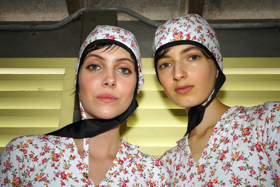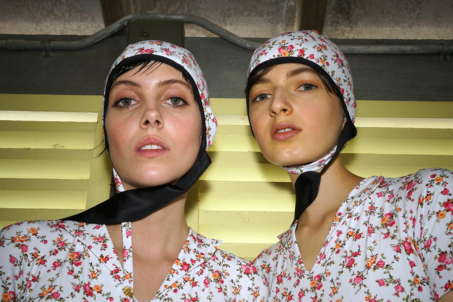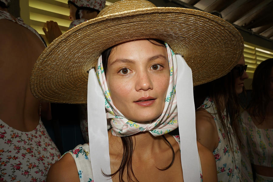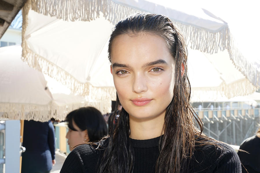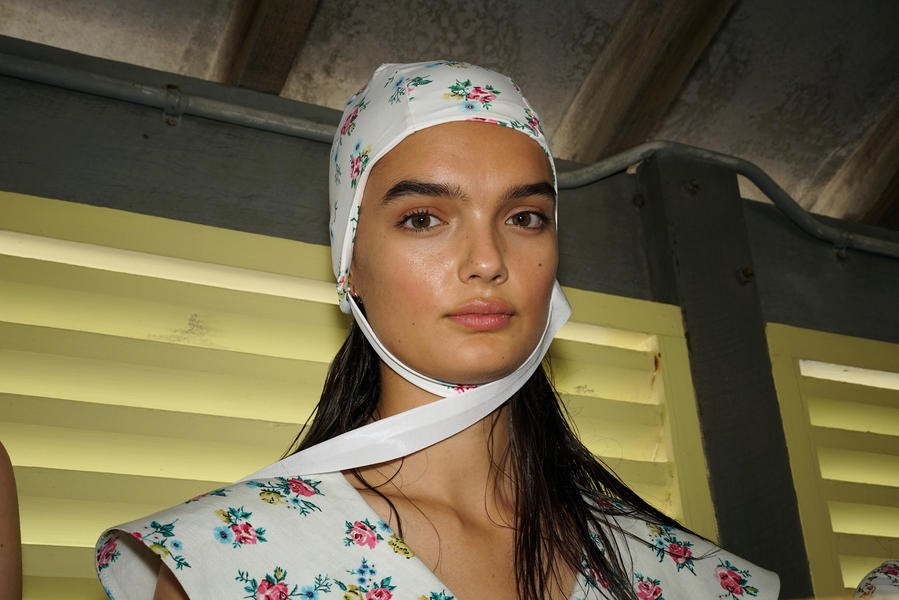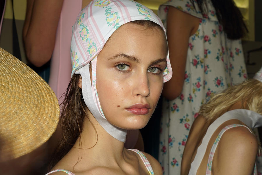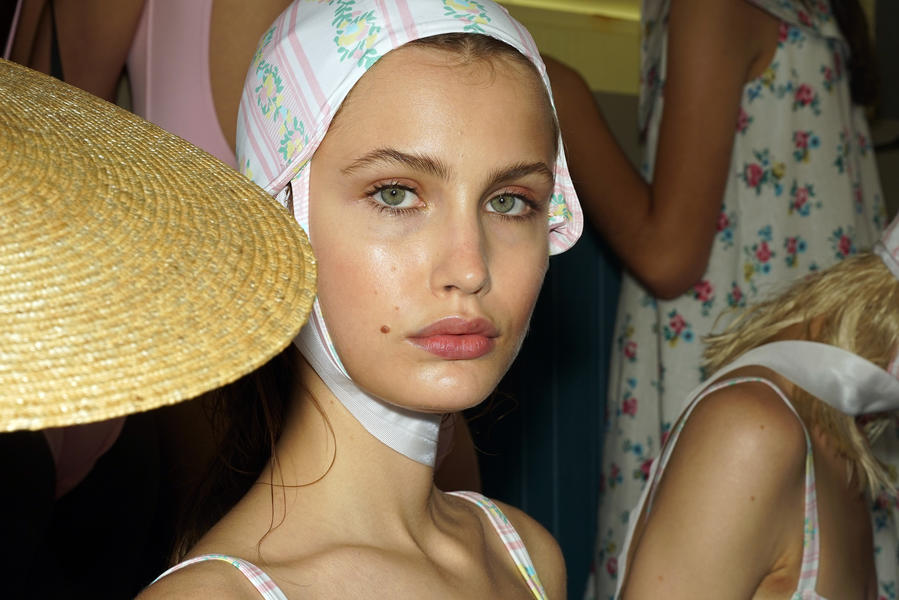 "There's been quite a strong story for the girls today, it's fifties and sixties inspired and the hair is lending itself to the beach, the ocean and the fashion. We were driven by the location of the show and what better excuse to go with a just-out-of-the-pool wet look. For us it was about ensuring we had the right texture, the hair needed to look wet but not be wet. Some of the girls are wearing head wear so it was also about placement, making sure that you can still see the hair despite it being slightly covered.