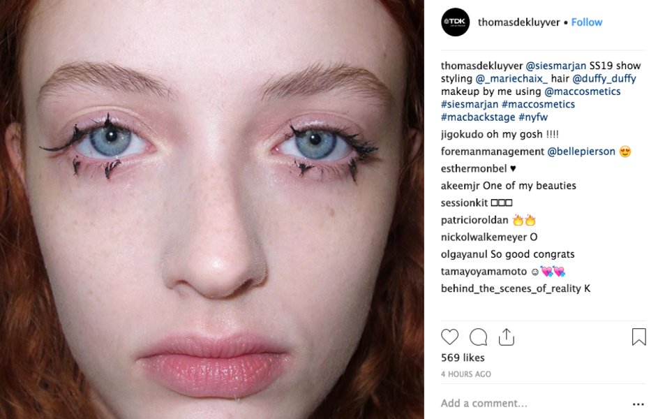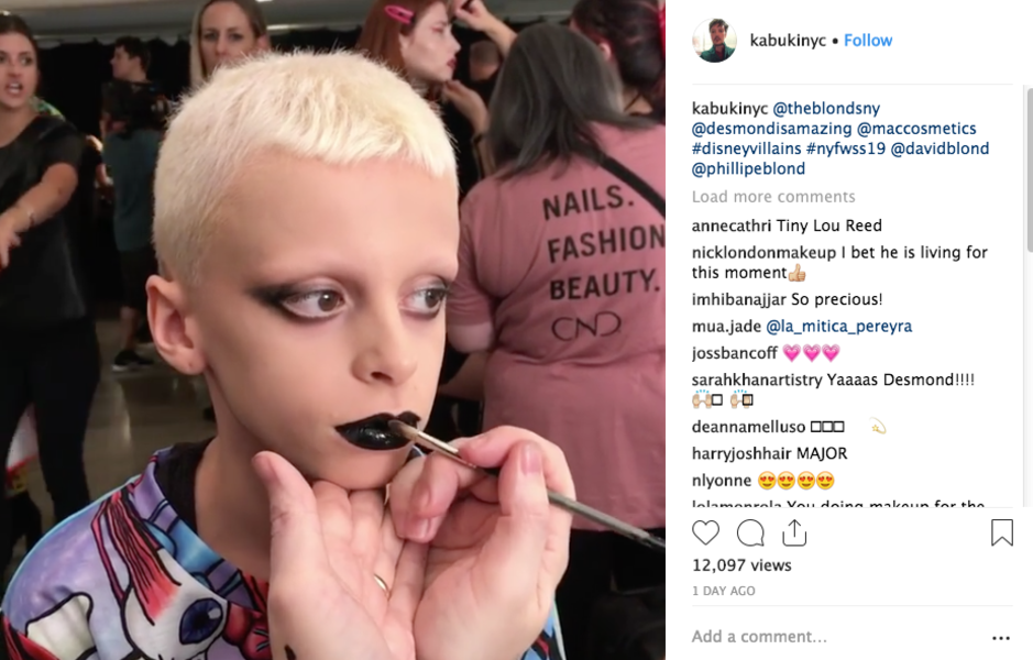 This M.A.C makeup artist lead the looks for Jeremy Scott and The Blonds, plus he was responsible for the full-body paint at Moschino’s Fall/Winter 2018 show. Expect to see much more of his work over the coming month.
