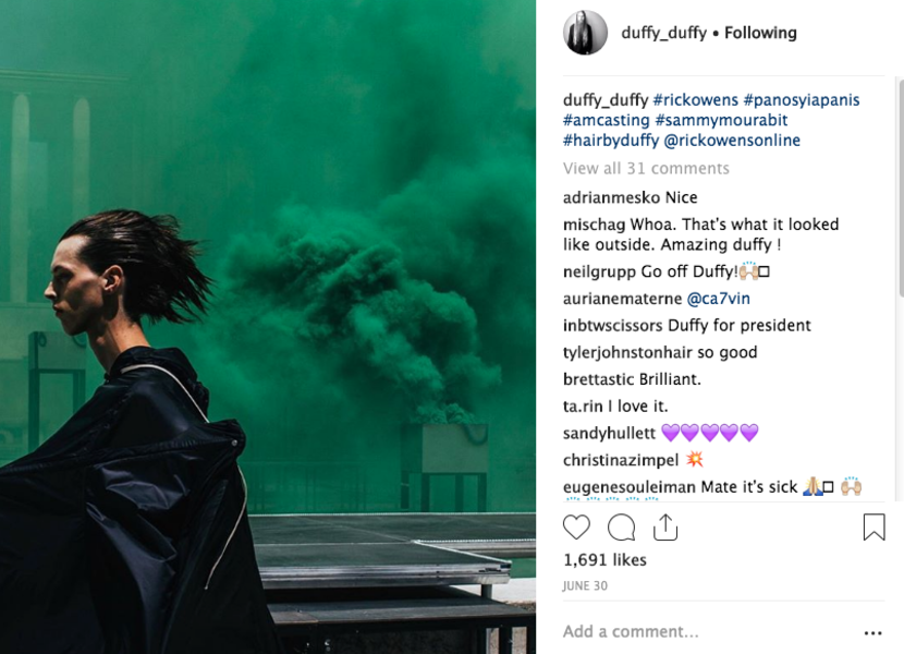 British-born hairstylist Duffy is a fashion month fixture backstage, appearing in Milan, London, Paris, and New York to lead hair backstage. Working in previous years with the likes of Louis Vuitton and Carolina Herrera, this past NYFW has seen Duffy work on r13 Denim and Siers Marjan.