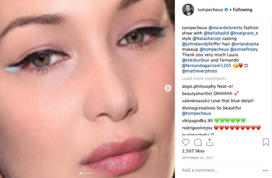 Another legendary MUA, Tom Pecheux (although currently looking like he’s on holiday) will likely be backstage during the Paris leg of fashion week with his ambassadorship for YSL Beauty. Pecheux has worked with everyone from Oscar de la Renta to Balmain, and always takes his followers backstage with him.