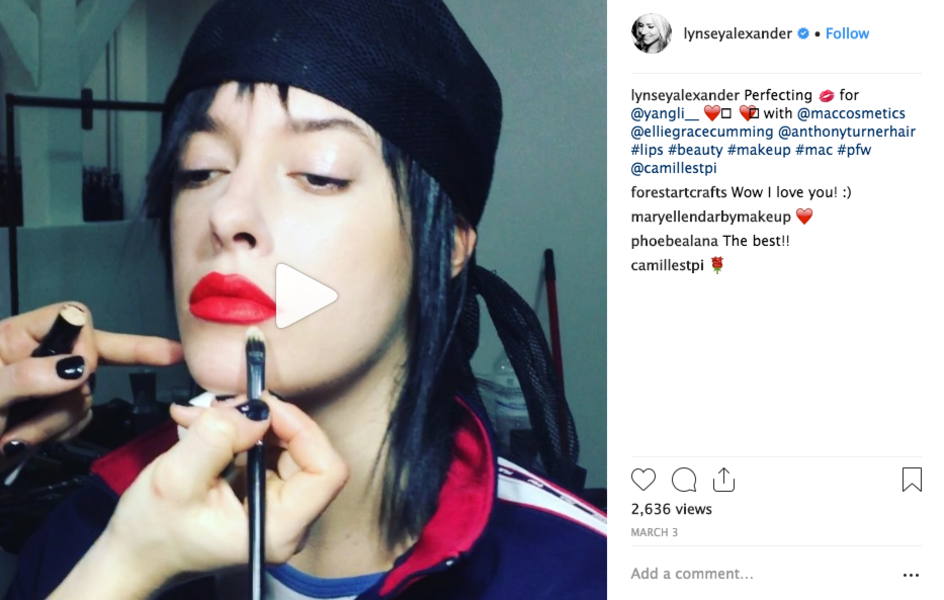 Alongside horse riding photos and editorials, MUA Lysey Alexander takes her followers backstage during the European stops of fashion month. Expect to see her work at the likes of Ann Demulemeester, Missoni, Mary Katranzou and Blumarine.