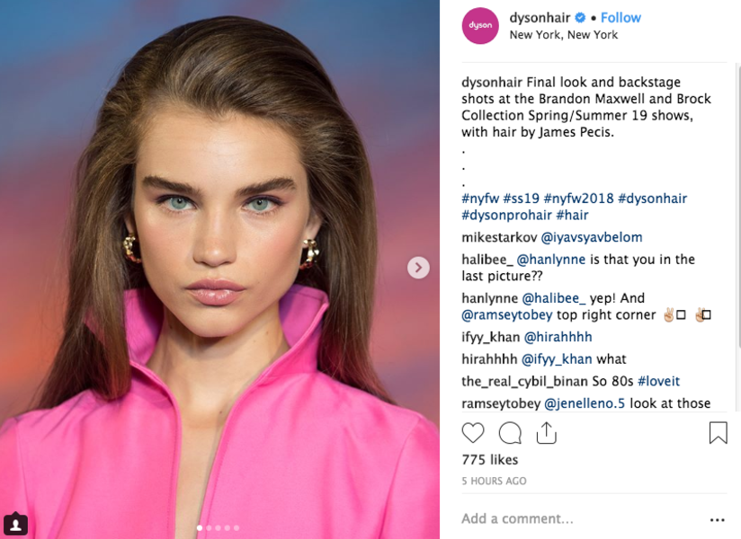 Dyson’s innovative new hairdryer (you know the one) is a staple for nearly every hair stylist backstage. Expect the brand to be posting lots of how-to’s throughout fashion month.
